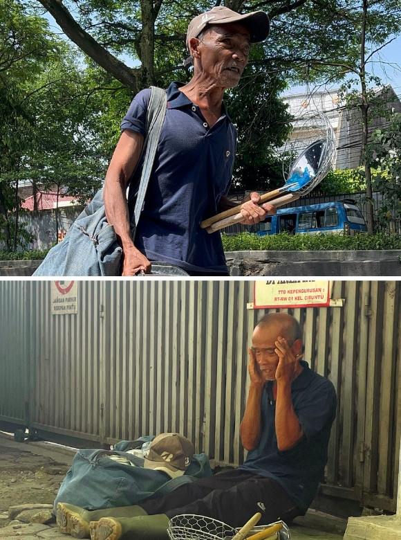 Abah Awih (73) berdiri di pinggir jalan sambil memegang satu ikat sutil dagangannya. Tangannya gemetar, penglihatannya tinggal setengah, mata kanan buta total dan mata kiri mulai buram. Sudah lebih dari 20 tahun ia berjualan keliling, namun kini tubuhnya tak lagi sekuat dulu. Asam urat membuat setiap langkah terasa nyeri, dan tak jarang Abah pulang dengan kaki bengkak serta napas tersengal karena seharian tak satu pun dagangan laku.