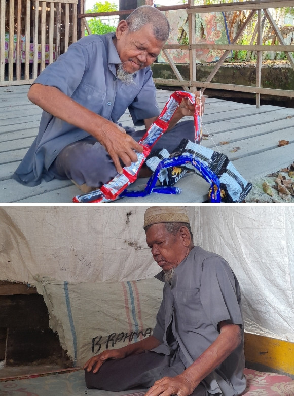 Setiap hari kakek tetap berkeliling menjajakan dagangannya tanpa mengeluh. Karena jalannya yang ngesot, tak sedikit orang salah memahami keadaannya. Ia pernah diteriaki “orang gila” ketika mencoba menawarkan dagangan, padahal ia hanya ingin mencari nafkah dengan cara yang halal. Tidak jarang jualannya sepi pembeli, dan kakek tertidur kelelahan di pinggir jalan. Mari bersama ulurkan tangan untuk beliau agar hidup layak di usia senjanya. Setiap donasi adalah harapan baru untuknya.