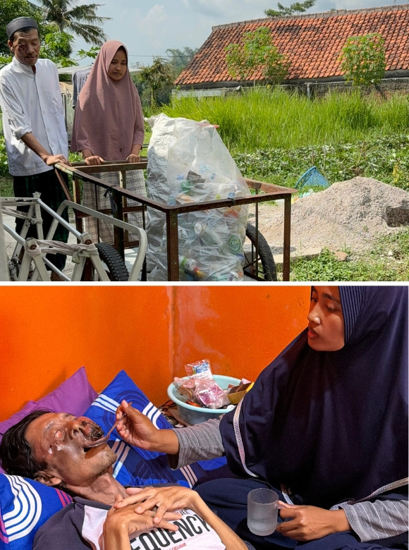 Pak Nurhasan harus menjalani hidup dengan penderitaan kanker kulit yang telah menggerogoti wajahnya selama dua tahun terakhir. Berawal dari kanker mulut yang tak disadari, penyakit itu kini semakin menyebar hingga menimbulkan luka besar, pendarahan, dan infeksi yang menyakitkan. Kondisi tersebut membuatnya kesulitan melihat, menahan rasa sakit setiap waktu, serta menghadapi stigma dari lingkungan sekitar yang sering menjauh karena bau luka yang tak tertahankan.