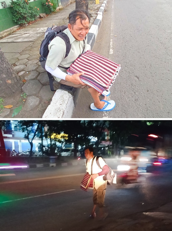 Setiap hari dengan kaki melengkung yang bengkak, Pak Uus tetap berjalan jauh demi mencari nafkah. Ia menjajakan keset dari pagi hingga sore, membawa 20 buah dengan harapan semua terjual. Namun realitanya, kadang hanya 3–5 keset yang laku, dan hasilnya bahkan tak cukup untuk kebutuhan sehari-hari. Dalam perjuangannya, Pak Uus pernah didorong orang mabuk hingga terjatuh ke gorong-gorong, juga ditipu hingga kehilangan handphone. Meski penuh keterbatasan semangatnya tak pernah padam.
