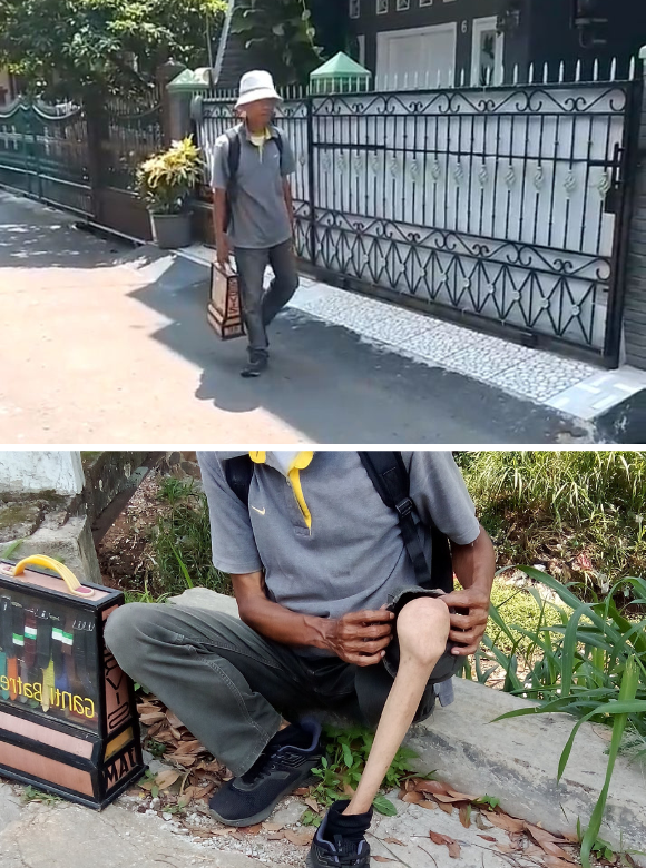 Pak Agus tetap melangkah meski kakinya tidak lagi menapak dengan sempurna. Setiap hari dengan kaki pincang dan box service di tangan, Pak Agus (55 tahun) berjalan menyusuri jalanan Bandung menawarkan jasa servis jam. Kaki kanannya mengecil dan tak bisa menopang tubuhnya secara normal. Namun keterbatasan fisik tak pernah menghentikannya untuk tetap mencari nafkah. Sejak sang istri meninggal karena kanker, Pak Agus merantau dari kampung demi bisa menghidupi diri sendiri dan anak semata wayangnya yang masih sekolah. Kadang ia harus berhenti karena pegal dan kelelahan, tapi tak ada pilihan. Di hari-hari sepi pelanggan, ia bahkan harus menahan lapar atau berutang ke warung nasi.