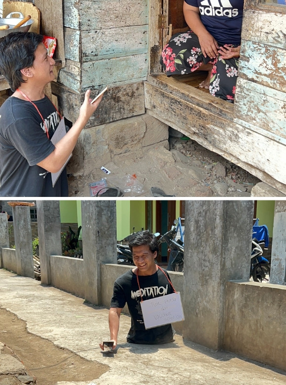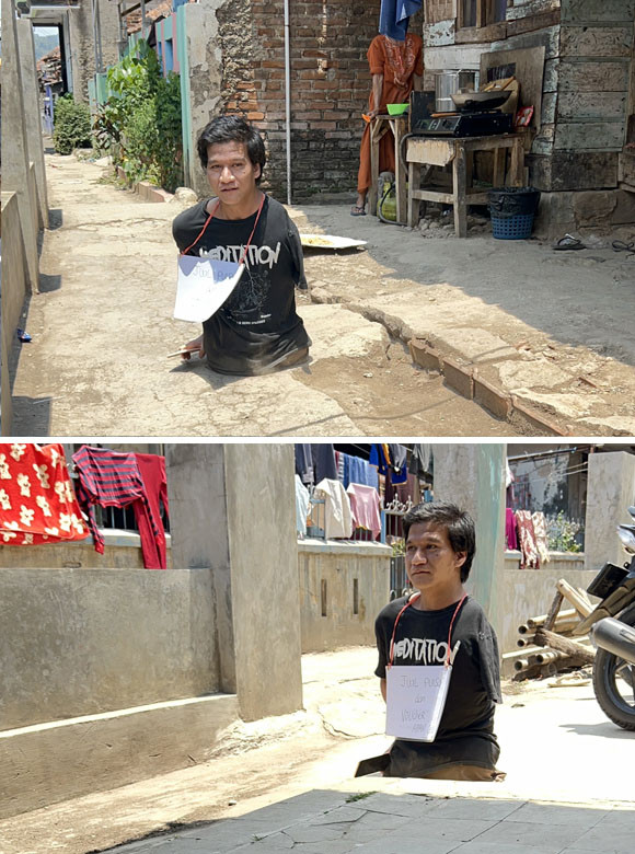 Meski menghadapi diskriminasi dan sering dibully hingga minder dan enggan sekolah, Apan tetap semangat. Dengan dukungan ibunya, ia rutin menjalani fisioterapi dan tetap berusaha produktif dengan jualan pulsa keliling untuk kebutuhan sehari-hari. Cara berjalan Apan pun unik, ia menggelinding karena tangan dan kaki yang terbatas. Namun keuntungan yang diperoleh dari jualan pulsa hanya 1-3 orang per hari dengan keuntungan Rp1.000–2.000 per isi pulsa.