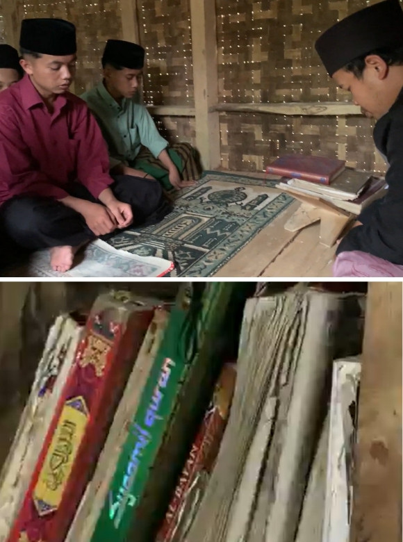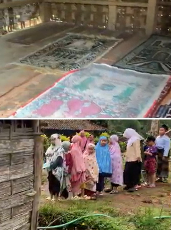 Karena belum memiliki bangunan mushola yang layak, warga terpaksa melaksanakan seluruh kegiatan ibadah di sebuah pondok kayu sederhana. Kondisinya sangat memprihatinkan: kayu penyangga sudah lapuk dimakan rayap, dindingnya miring, dan atapnya penuh lubang. Saat hujan turun, air menetes dari berbagai sisi hingga lantai menjadi basah. Di tempat itulah warga tetap shalat berjamaah dan anak-anak belajar mengaji setiap hari.