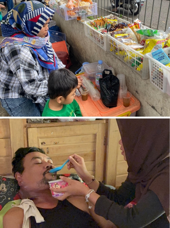 Kini, sang istri, Ibu Nurhasanah, menjadi satu-satunya harapan keluarga. Ia berjualan minuman di depan rumah sakit, puskesmas, atau tempat ramai sambil menggendong anaknya. Penghasilan yang didapat hanya sekitar 20-25 ribu rupiah per hari, jauh dari cukup untuk kebutuhan hidup dan biaya pengobatan suaminya. Di tengah perjuangan itu, mereka juga harus mengobati anak bungsu yang mengalami kelainan kesehatan dan masih menjalani perawatan di rumah sakit.
