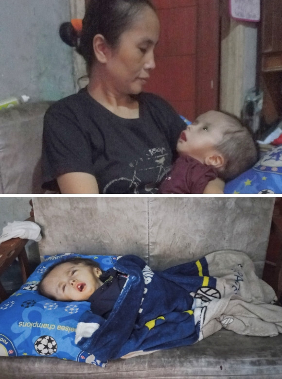 Sejak usia 4 bulan, Theo Danantya Suryadilaga (3 tahun) harus berjuang melawan hidrosefalus. Kepalanya terus membesar hingga kini, sementara tubuh mungilnya semakin melemah hanya menyisakan tulang. Theo sempat menjalani operasi pertama di RS Hermina Bandung, namun langkah pengobatannya terhenti karena BPJS tidak lagi aktif dan keluarga tak mampu menanggung biaya rumah sakit. Kini, Theo hanya bisa dirawat di rumah dengan obat seadanya, padahal seharusnya ia segera mendapatkan tindakan lanjutan di RS Hasan Sadikin Bandung.