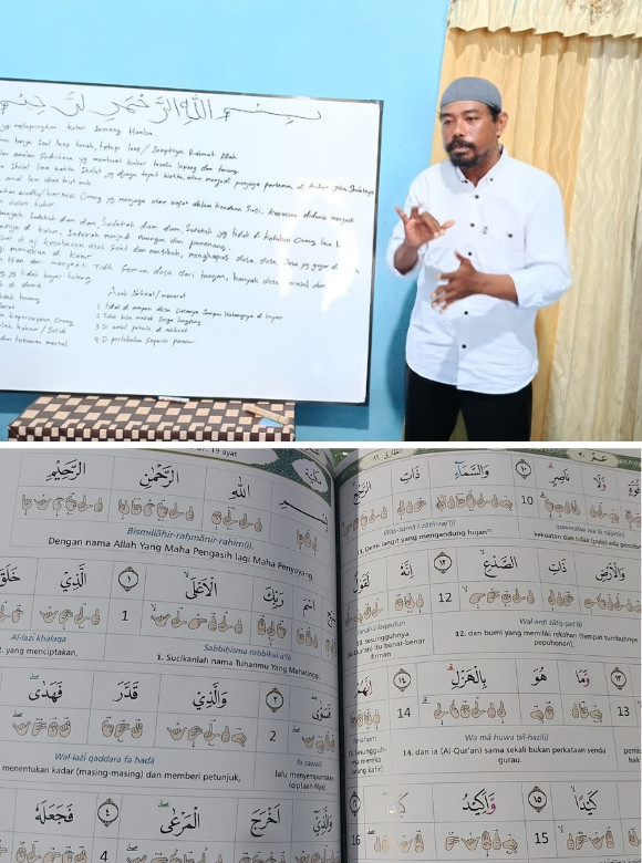 Namun keterbatasan begitu terasa. Dari 30 santri lansia, hanya tersedia 3 meja belajar. Mereka harus bergantian saat setoran hafalan. Ruangan sempit membuat santri laki-laki dan perempuan berdesakan di atas karpet pinjaman. Harga satu mushaf Al-Qur’an isyarat mencapai Rp500.000, jumlah yang tidak mudah dijangkau. Padahal mushaf itulah jembatan mereka memahami firman Allah.