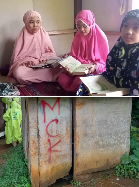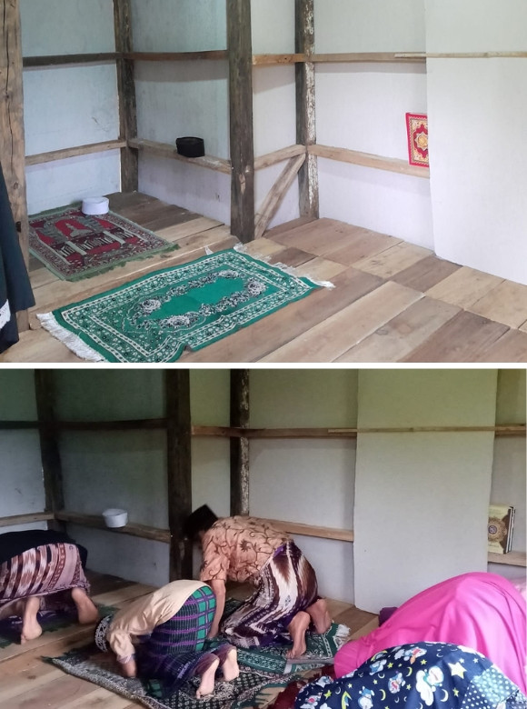 Akses menuju mushola pun tidak mudah. Jalan tanah yang licin dan becek saat hujan harus dilalui warga demi menunaikan shalat berjamaah. Ukurannya kecil, hanya cukup untuk satu shaf laki-laki dan satu shaf perempuan. Namun keterbatasan tak memadamkan semangat mereka. Di tempat sederhana inilah anak-anak desa mengaji langsung dibimbing Pak Sodikin, seorang petani dan kuli bangunan yang membangun musholla ini dengan kemampuan seadanya.