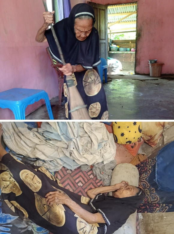 Di usia 79 tahun, Nenek Sarino Panigoro harus menjalani hari-hari dengan penuh keterbatasan. Sakit di bagian kaki membuatnya sulit berjalan dan beraktivitas, sehingga ia hanya bisa bergerak dengan bantuan tongkat. Tanpa pekerjaan dan tanpa penghasilan, Nenek Sarino kini hidup dalam ketidakpastian, mengandalkan belas kasih orang lain untuk sekadar bertahan hidup.
